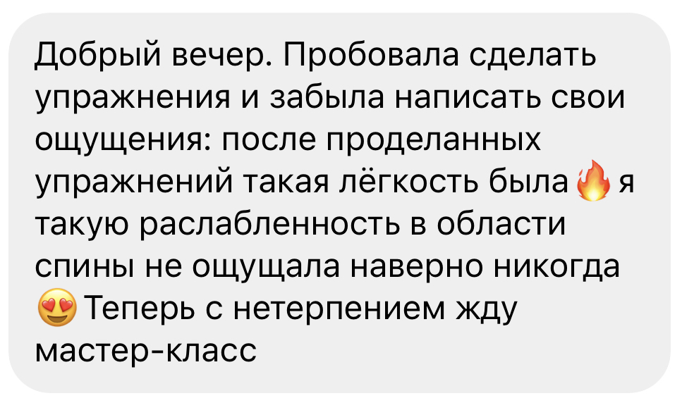 Благодаря продуманности моей системы коррекции осанки, ты ощутишь эффект сразу и сможешь выпрямить спину без усилий, после первого урока.